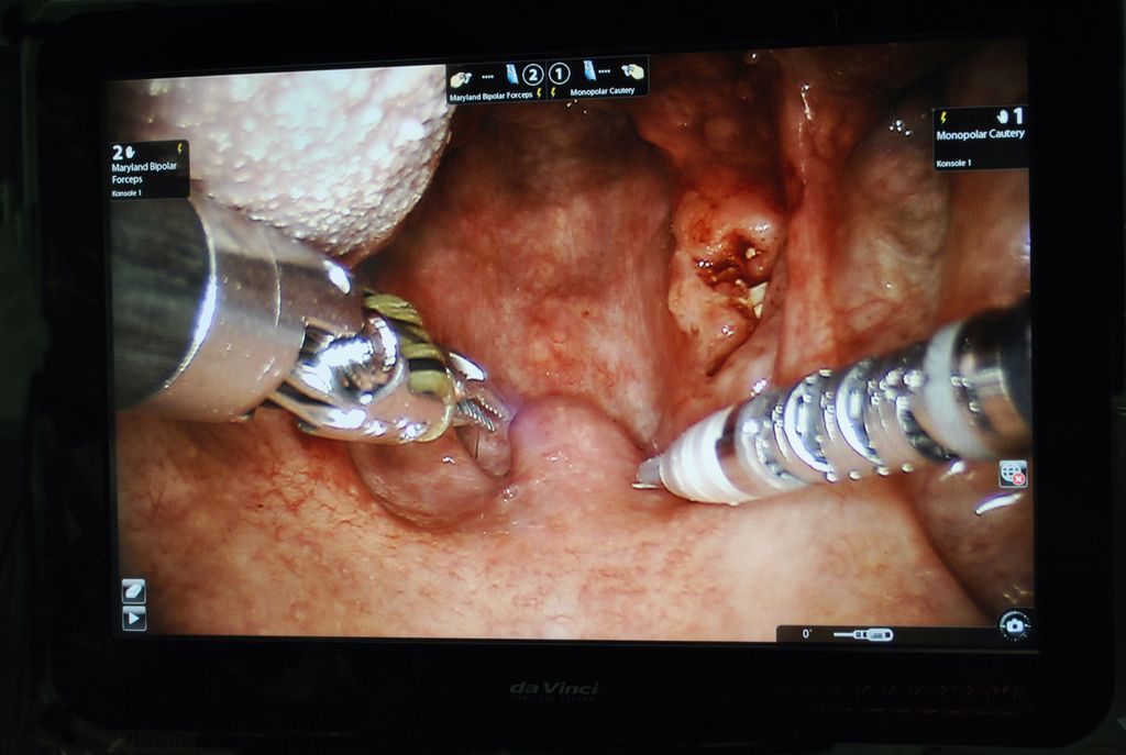 Abb. 3: Ein Team aus einem Chirurgen und einem „bedside assistant“ arbeitet während der TORS am Patienten