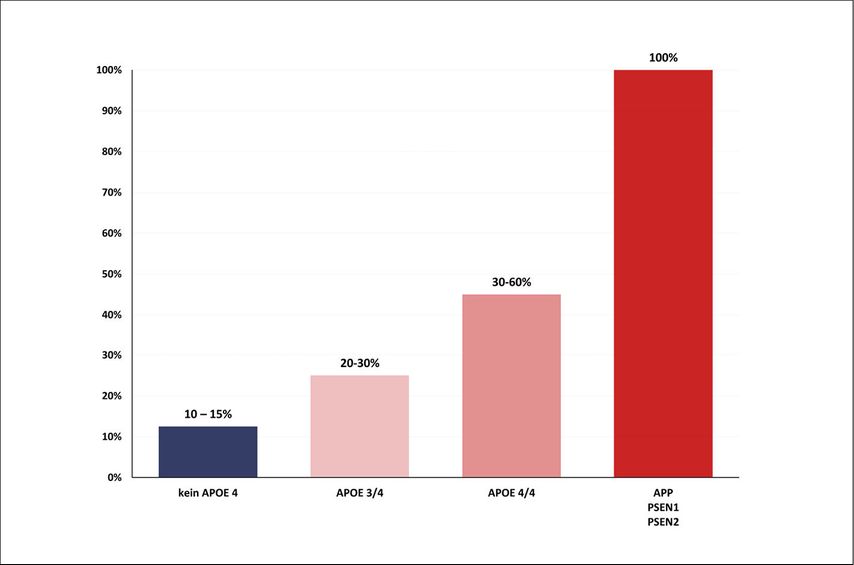 APOE4 ist der stärkste genetische Risikofaktor für die sporadische Alzheimererkrankung und beeinflusst Erkrankungsrisiko sowie -beginn dosisabhängig.