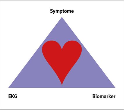 Der Herzinfarkt ist die häufigste lebensbedrohliche Ursache bei Brustschmerzen. Die Diagnose wird durch Anamnese, EKG und Biomarker gestellt (Abb. 1). Die Brustschmerzen werden meist als flächenförmig sowie drückend, klemmend oder brennend beschrieben und können in den Unterkiefer, zwischen die Schulterblätter, in den Oberbauch sowie in den linken (häufiger und sensitiver) und/oder rechten Arm (seltener, aber spezifischer) ausstrahlen. Der Vergleich mit einem Vor-EKG hilft bei der Beurteilung von Repolarisationsstörungen. Bei akuten ST-Streckenhebungen (Differenzialdiagnose [DD] Perikarditis) liegt meist ein kompletter Verschluss einer epikardialen Koronararterie vor und es sollte eine zügige Reperfusion angestrebt werden. Das Troponin ist ein herzspezifischer Marker und mit unauffälligen Werten insbesondere bei Ein- oder Mehrstundenkontrollen kann ein akutes Koronarsyndrom mit hoher Wahrscheinlichkeit ausgeschlossen werden. Ein erhöhter Troponinwert findet sich allerdings bei zahlreichen anderen Erkrankungen (z. B. Thoraxtrauma, Sepsis, epileptischer Anfall).