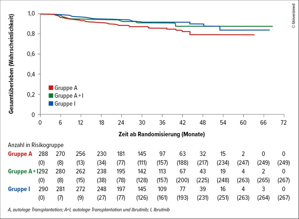 Diese Ergebnisse führten dazu, dass die Hinzunahme von Ibrutinib zur Induktions-Immunchemotherapie gefolgt von einer Erhaltungstherapie mit Ibrutinib und Rituximab mittlerweile als neuer Standard bei jüngeren Patient:innen mit MCL angesehen wird (entsprechend erfolgte die Zulassung von Ibrutinib in der Erstlinientherapie in der EU). Eine Hochdosischemotherapie mit ASCT ist somit für Patient:innen, die Ibrutinib in der Induktions- und Erhaltungstherapie bekommen, nicht mehr Teil der Standardtherapie.