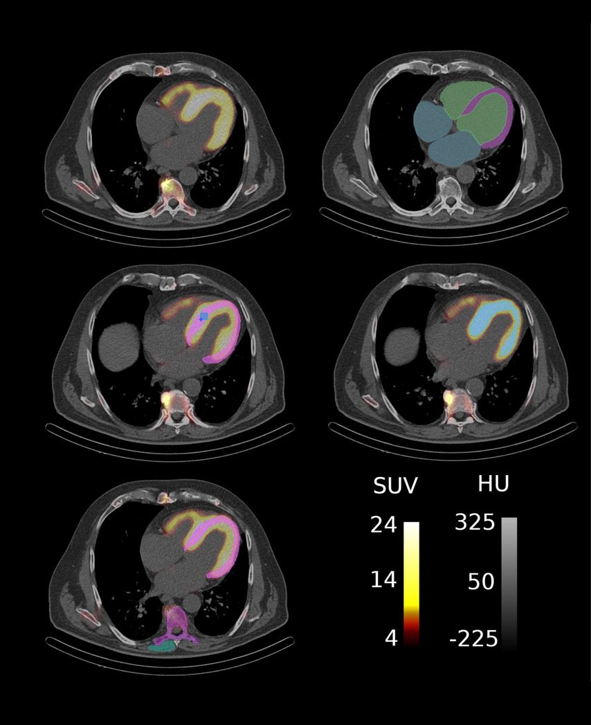 Im Rahmen einer explorativen bildgebenden Studie der Klinischen Abteilung für Kardiologie in Kooperation mit der Klinischen Abteilung für Nuklearmedizin der Medizinischen Universität Wien wurde der Einfluss amyloidspezifischer Therapien auf SPECT/CT-basierte Marker untersucht (Abb. 2), die myokardiale Amyloidablagerungen widerspiegeln. Die KI-gestützte Segmentierung der kardialen Strukturen ermöglicht eine umfassende Quantifizierung der Amyloidablagerungen im Myokard und können als potenzielle nichtinvasive bildgebende Biomarker zur Überwachung der therapeutischen Wirksamkeit bei Patient:innen mit ATTR-CM dienen (Abb. 3).