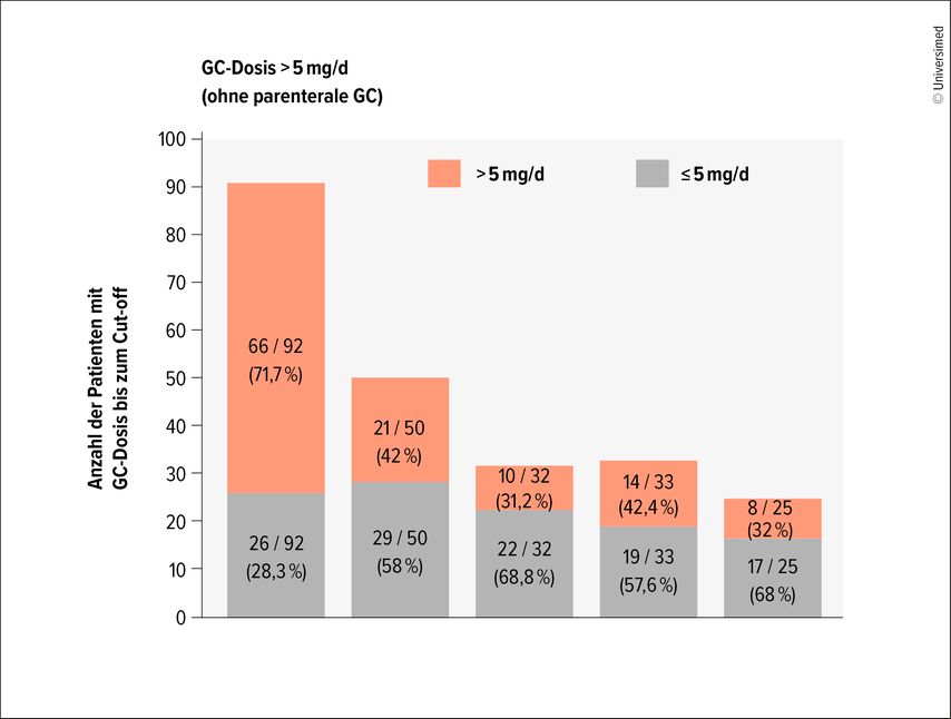 Abb. 1: Entwicklung der hohen GC-Dosierung (>5mg/d) vom Studienbeginn bis zum Ende nach vier Jahren (modifiziert nach Wallner M et al. 2025)3