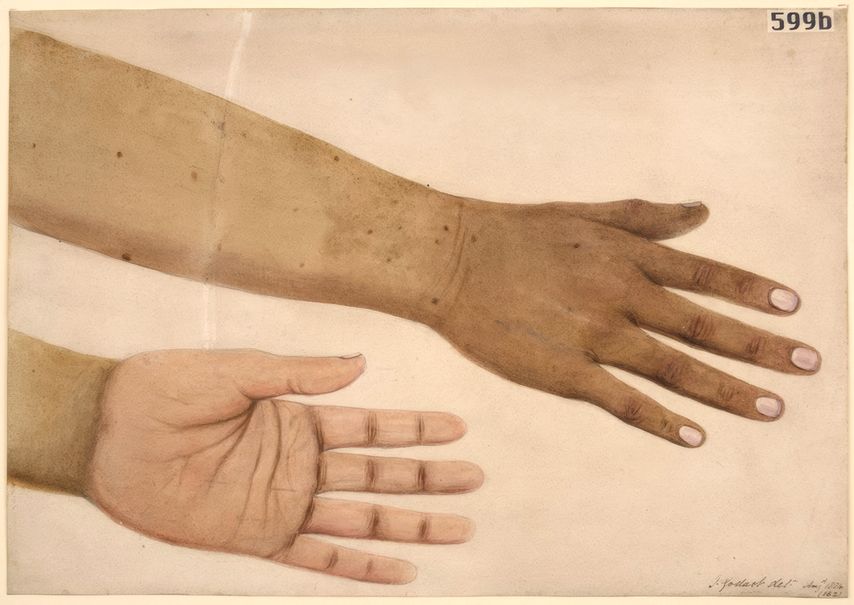 Fig.7: Hyperpigmentation des plis palmaires dans la maladie d’Addison (source: Barts Health NHS Trust Archives SBHB/MU/14/27/9/2. Photo number: L0061738. Sous licence Creative Commons Attribution 4.0 International license)