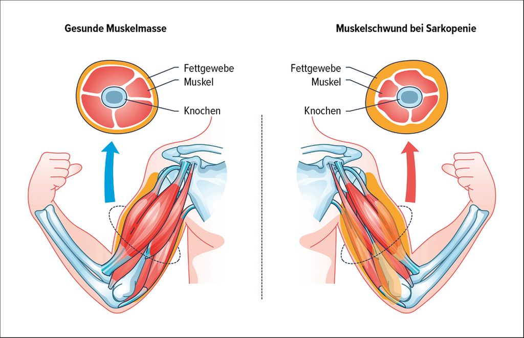 Auch verminderte Vitamin-D- sowie Testosteron- und Estradiol-Spiegel fördern die Entstehung einer Sarkopenie.5
