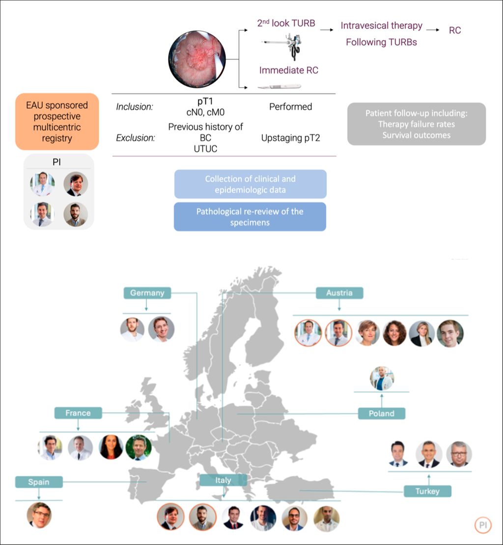Das von der Europäischen Urologischen Gesellschaft (EAU) geförderte Projekt ROGUE-1 ist ein prospektives, multizentrisches Register für Patient:innen mit primärem pT1-High-Grade-Urothelkarzinom (Abb. 1). Ziel sind die europaweite Standardisierung und Verbesserung der Versorgung durch die Verknüpfung klinischer, pathologischer und verlaufsbezogener Daten.