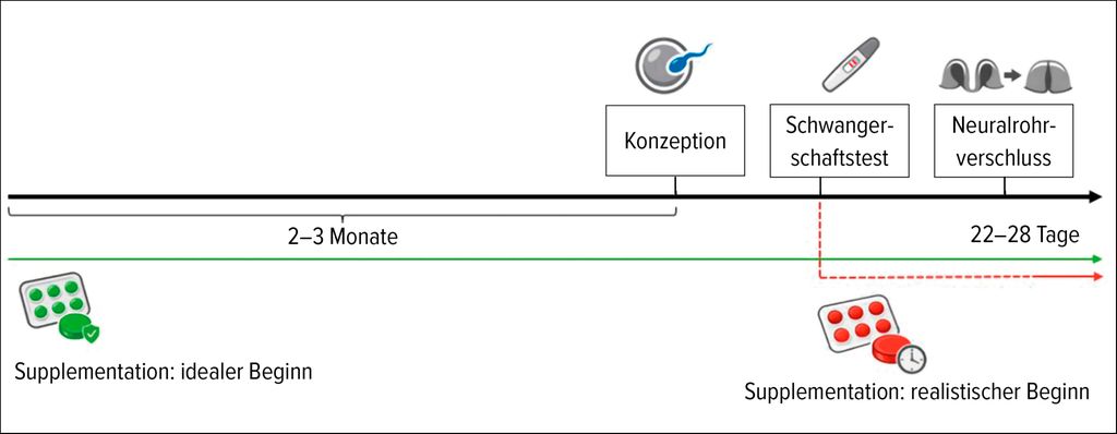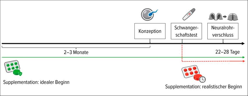 Abb. 2: Eine der Limitationen der Supplementationsstrategie: Die Supplementation beginnt oft erst mit dem positiven Schwangerschaftstest