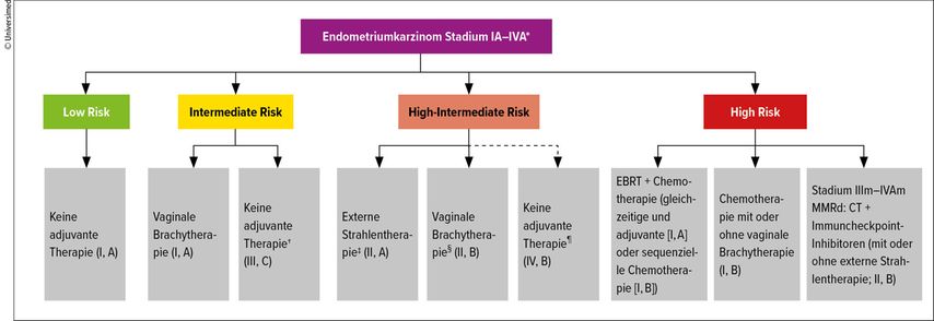 Abb. 2: Algorithmus zur adjuvanten Therapie beim Endometriumkarzinom Stadium IA–IVA