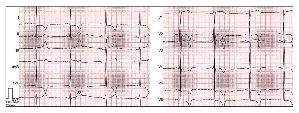 Abb. 1: EKG bei HCM/HOCM mit positivem Sokolow-Lyon-Index und sekundären Repolarisationsstörungen