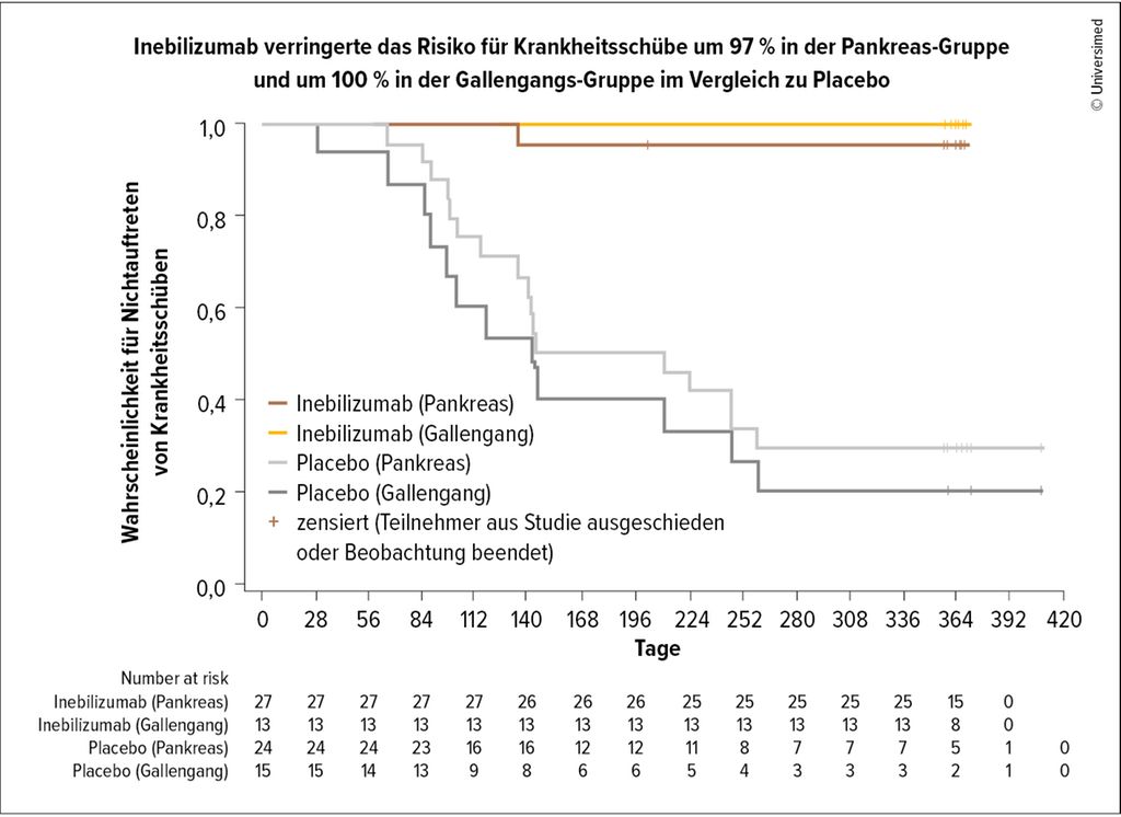Eines der persönlichen Highlights am EASL Congress 2025 war für OÄ Priv.-Doz. Dr. Dr. Elisabeth Tatscher, Universitätsklinik für Innere Medizin der Medizinischen Universität Graz, der „postgraduate course“ zum Thema autoimmune und cholestatische Lebererkrankungen, „die sicherlich einen Schwerpunkt des heurigen Kongresses darstellten. Besprochen wurde unter anderem die IgG4-assoziierte Erkrankung als weiterhin herausforderndes Erkrankungsbild, dessen Diagnose und Management einen multidisziplinären Ansatz erfordern“, so Tatscher. Hervorzuheben ist hier Inebilizumab, ein gegen CD19-positive B-Zellen gerichteter monoklonaler Antikörper, der basierend auf den Ergebnissen der am Kongress präsentierten Phase-III-Studie MITIGATE rezent als erstes Medikament zur Therapie der IgG4-assoziierten Erkrankung (IgG4-RD) von der U.S. Food and Drug Administration (FDA) zugelassen wurde (Abb.1).1 „Das ist definitiv ein therapeutischer Duchbruch in der Induktion einer steroidfreien Remission der Erkrankung“, so Univ.-Prof. Dr. Michael Trauner, Klinische Abteilung für Gastroenterologie und Hepatologie der Universitätsklinik für Innere Medizin III, Medizinische Universität Wien.