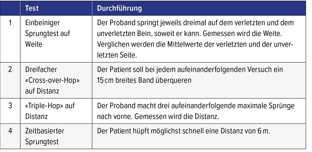 Tab. 1: Vier verschiedene Sprungtests zur Prüfung, ob der Patient ein «Coper» oder ein «Non-Coper» ist23