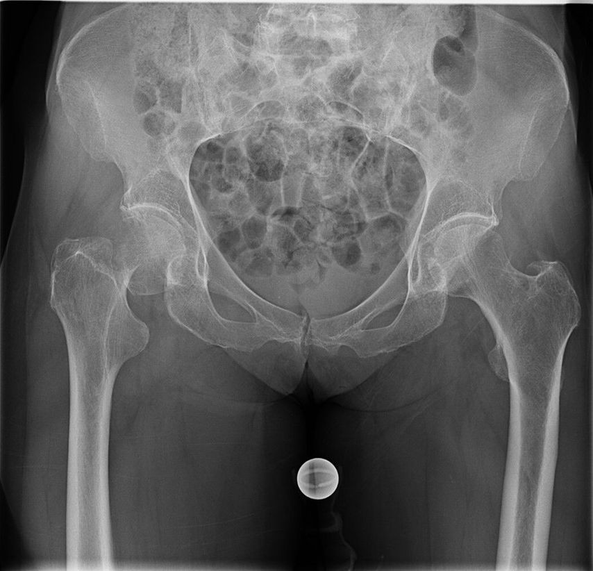 Abb. 3: 81-jährige Patientin mit nach Sturz dislozierter Schenkelhalsfraktur Garden IV rechts
