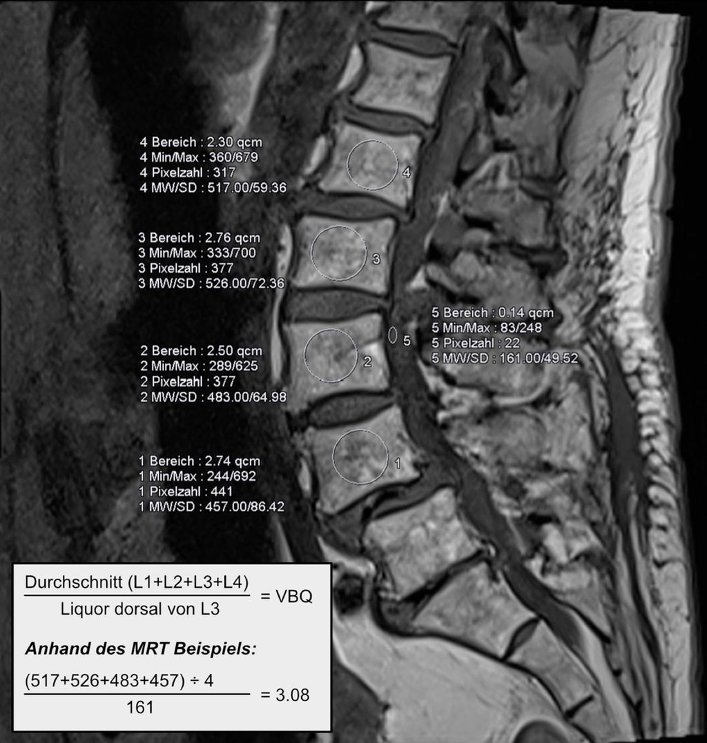 Abb. 1: Ermittlung des MRT-basierten Vertebral Bone Quality Score (VBQ) nach Ehresman J et al.9