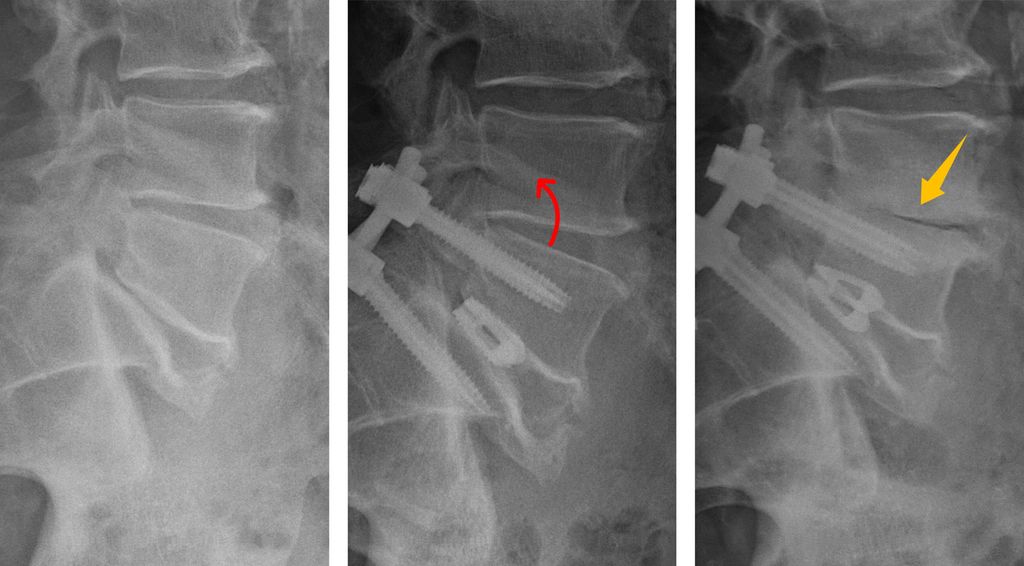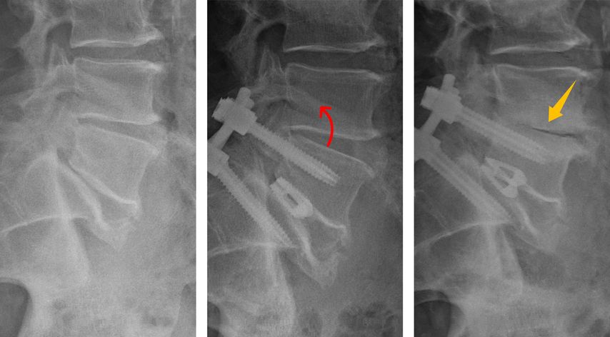 Die Vorstellung, dass jedes fusionierte Segment unweigerlich zu einer Degeneration des nächsten führt, scheint so nicht mehr haltbar. Auch an nicht operierte Segmente angrenzende Bandscheiben können degenerieren, wenn Kompensationsmechanismen oder bereits bestehende Fehlstellungen dies begünstigen. Zu bedenken ist außerdem, dass eine radiologisch sichtbare Degeneration nicht zwangsläufig mit der klinischen Symptomatik oder gar dem Revisionsbedarf korreliert. Bei der Wahl der Therapie und insbesondere bei der Indikationsstellung für einen operativen Revisionseingriff ist daher die Ursache individueller Beschwerden präzise zu analysieren und nicht allein der Fusion die Verantwortung zuzuschreiben. Dies gilt umso mehr, wenn in der klinischen Symptomatik die Lumbalgie und weniger radikuläre Beschwerden im Vordergrund stehen.