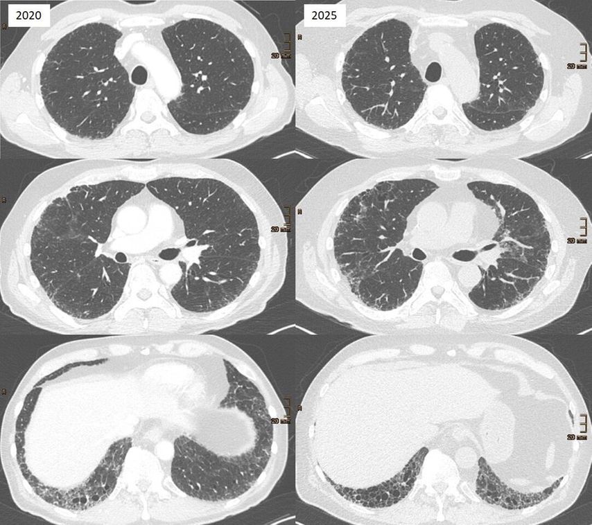Abb. 1: Beispiel eines progredienten Verlaufs von interstitiellerLungenanomalie (ILA) zu interstitieller Lungenerkrankung (ILD)
