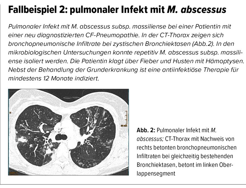Infektionen mit nichttuberkulösen Mykobakterien nehmen global signifikant zu. Die Unterscheidung von Kolonisation, transienter Infektion und NTM-Erkrankung kann klinisch sehr schwierig sein. Eine sorgfältige Diagnose ist zentral, da die antibiotischen Therapien sehr langwierig und oft nebenwirkungsreich sind.