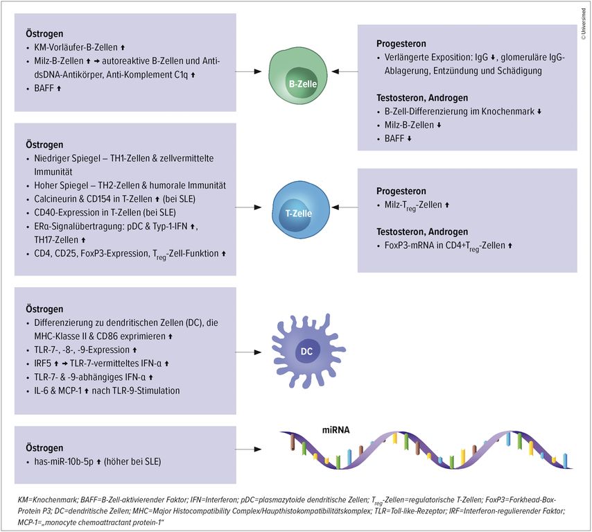 Abb. 1: Wirkung von Geschlechtshormonen auf Immunzellen bei SLE (modifiziert nach Kim JW et al. 2022)6