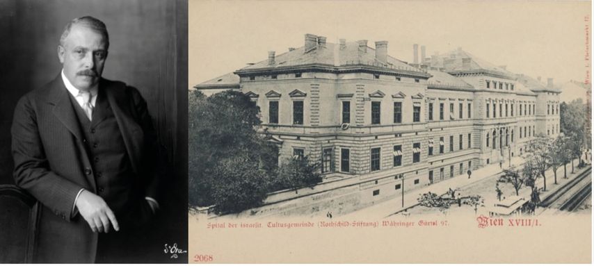 Abb. 4: A: Otto Zuckerkandl. B: Ansichtskarte Rothschildspital, um 1900